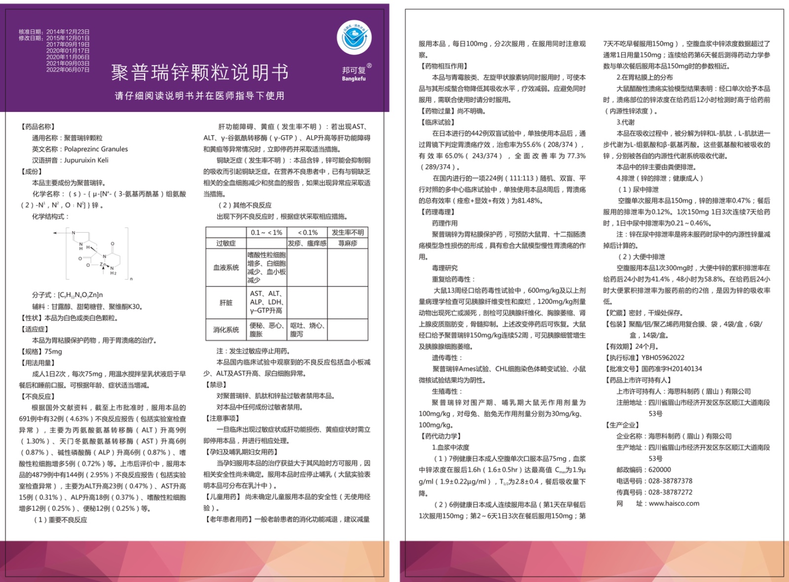 【通用名】聚普瑞鋅顆粒